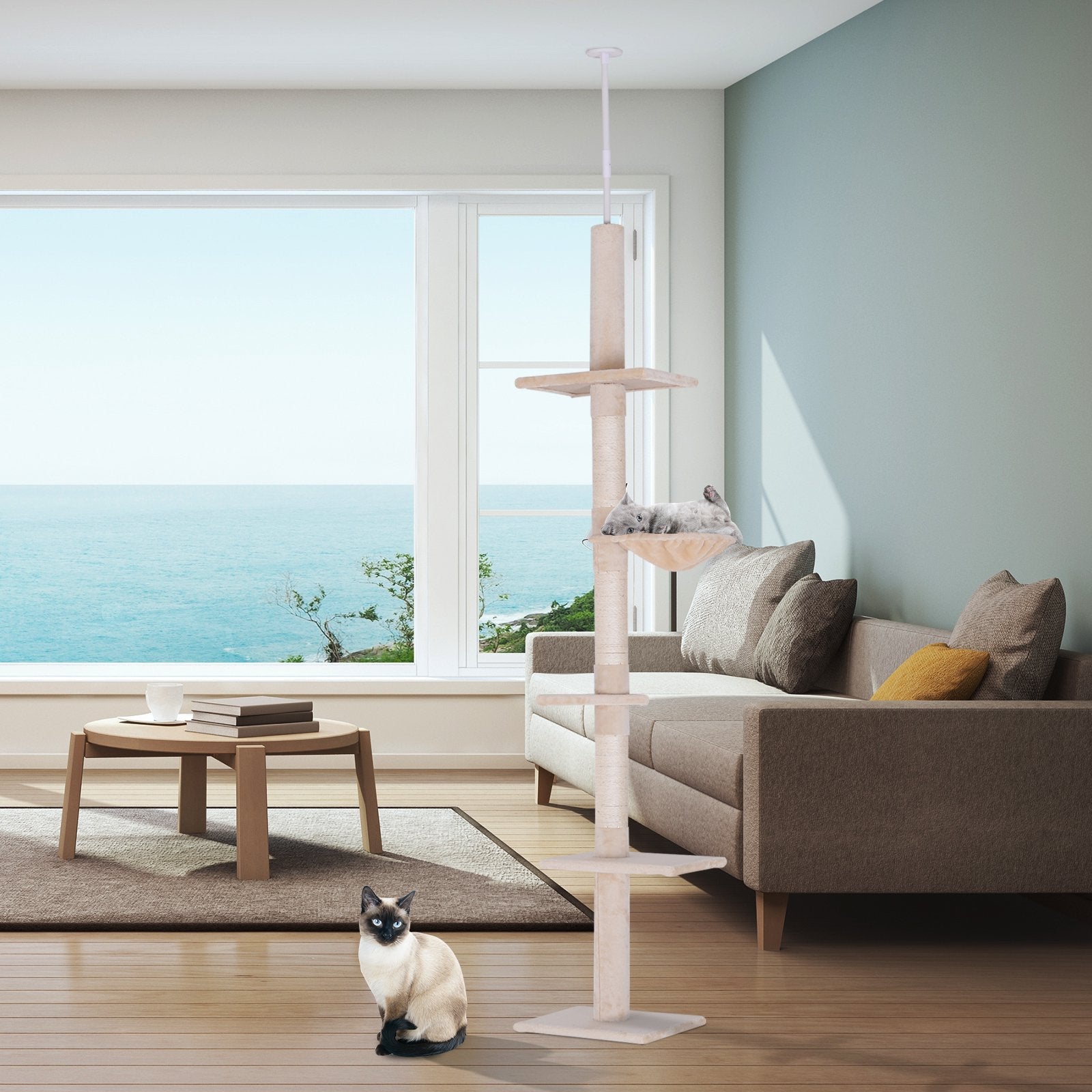 230-260cm Cat Climbing Tree 5-Tier Kitty Activity Center Scratching Post