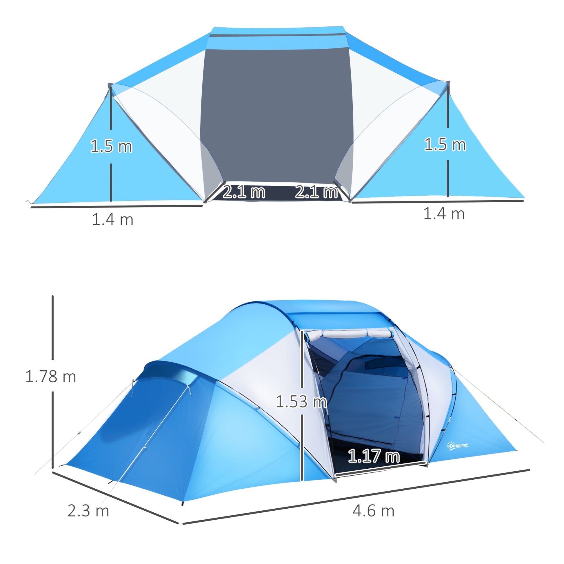 - 4-6 PERSON TUNNEL TENT: Features 2 bedrooms and a living area, suitable for 4-6 people. Perfect for families and friends camping together