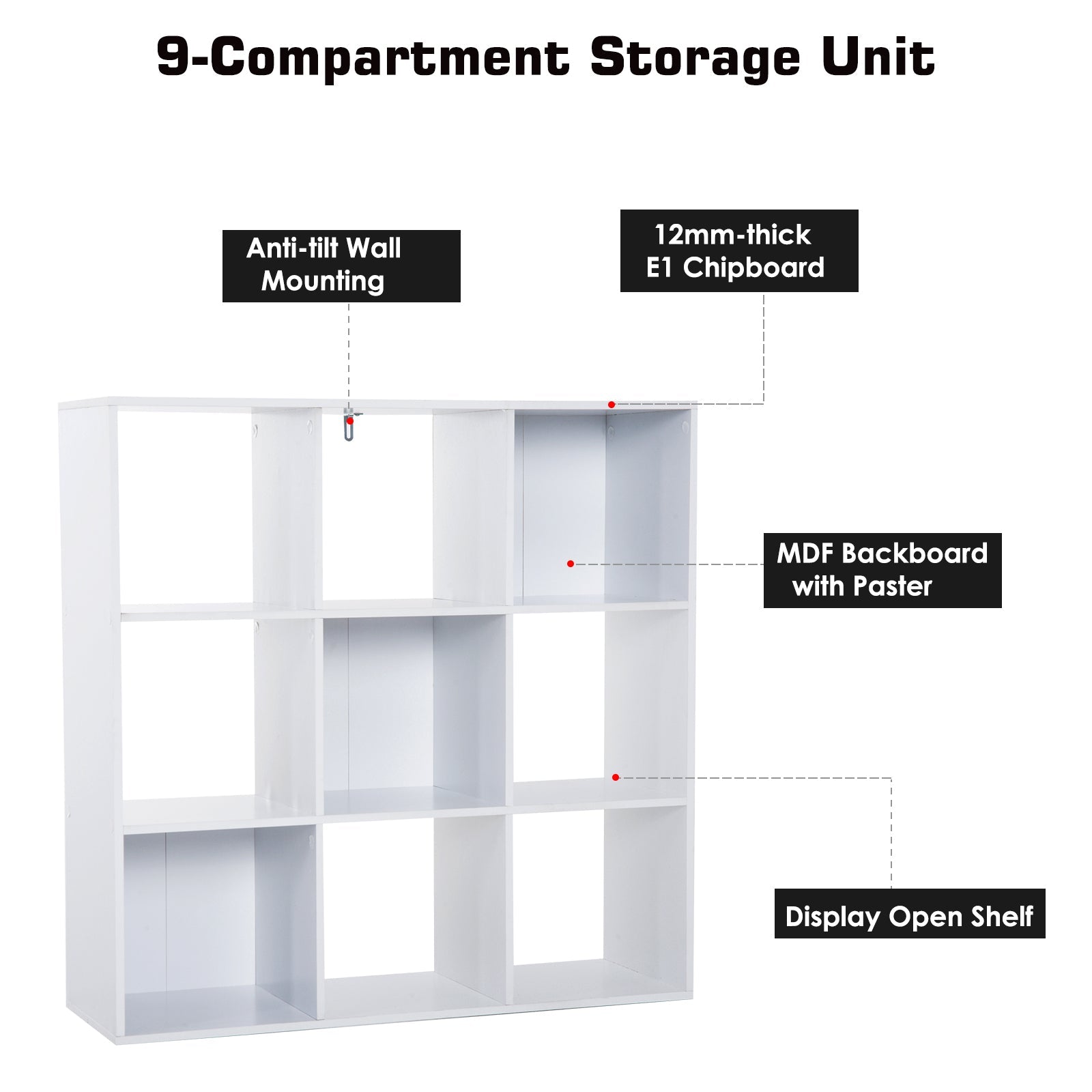 - Cabinet provides lots of storage space with 9 compartments, each section measuring at 28 x 29 x 28 cm