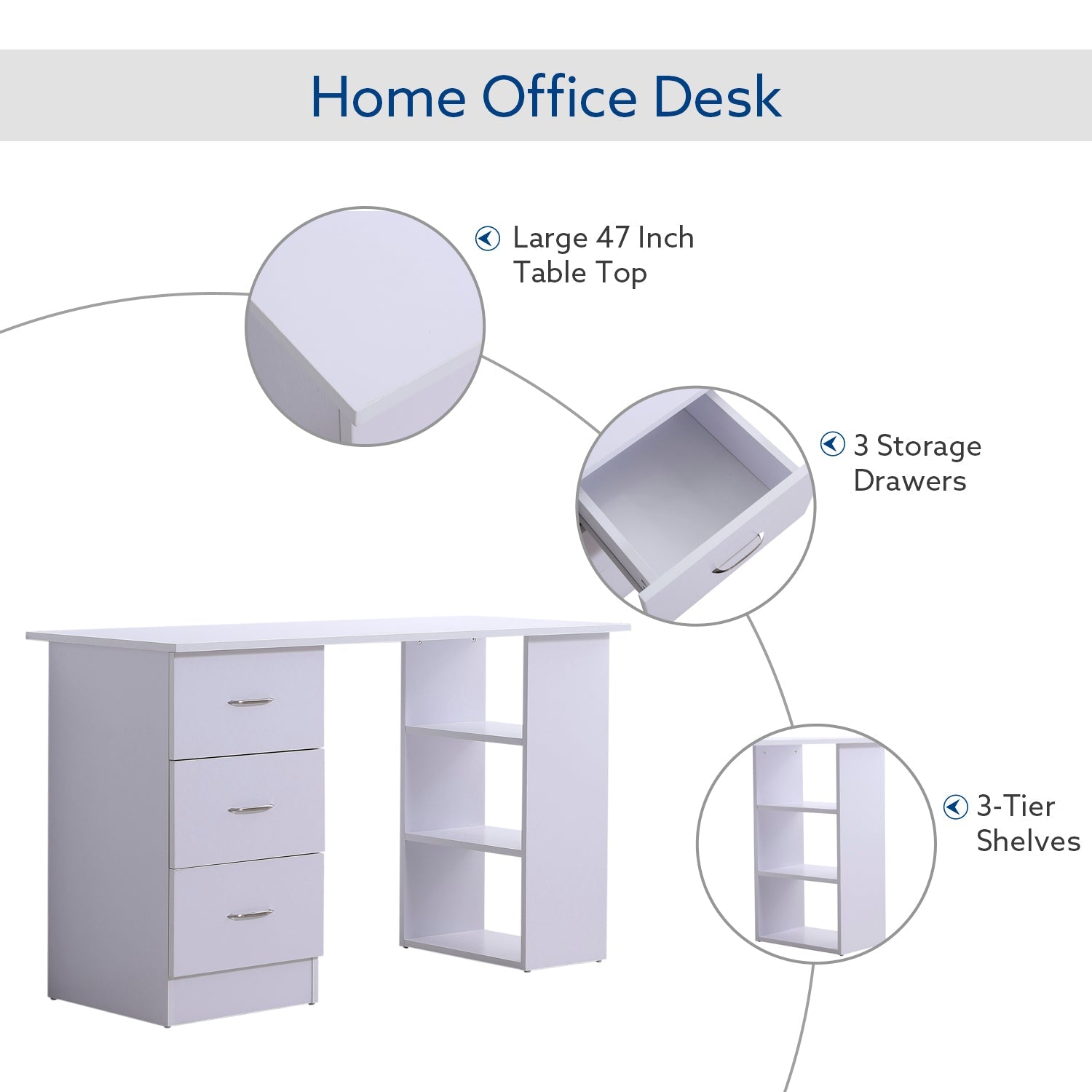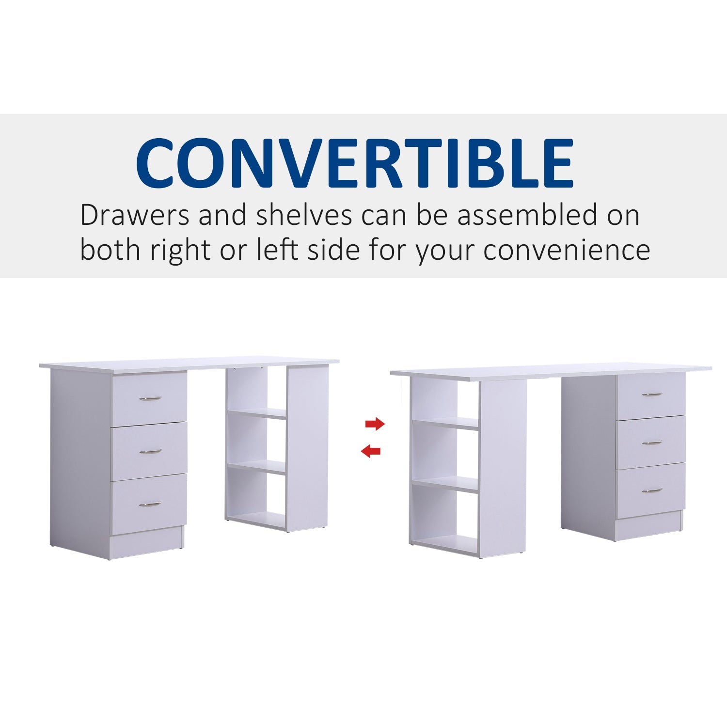 - 3-Tier Shelves & 3 Drawers: This home office desk features 3 drawers for storing your office essentials. 3 open shelves provide extra space for displaying your favourite items. The drawer can be installed back or forth according to your needs, which makes the open shelf can be on the left or the right side